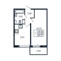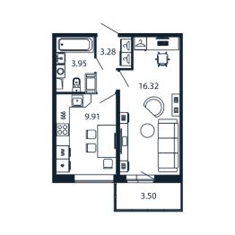 Прямая продажа от застройщика! Готовая Однокомнатная квартира 32.8 кв.м с кухней 9.91 кв.м с чистовой отделкой на 11 этаже в сданном ЖК "Полис Лаврики".