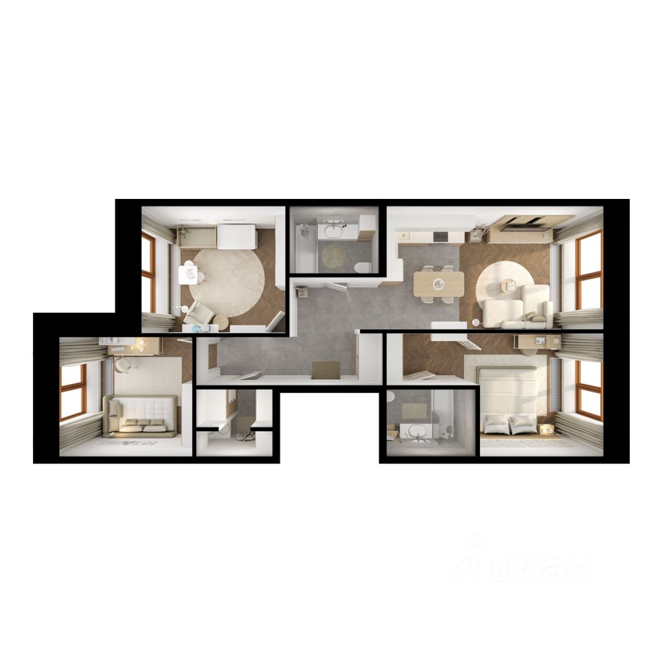 Во всех квартирах будут трёхметровые потолки и окна в пол.