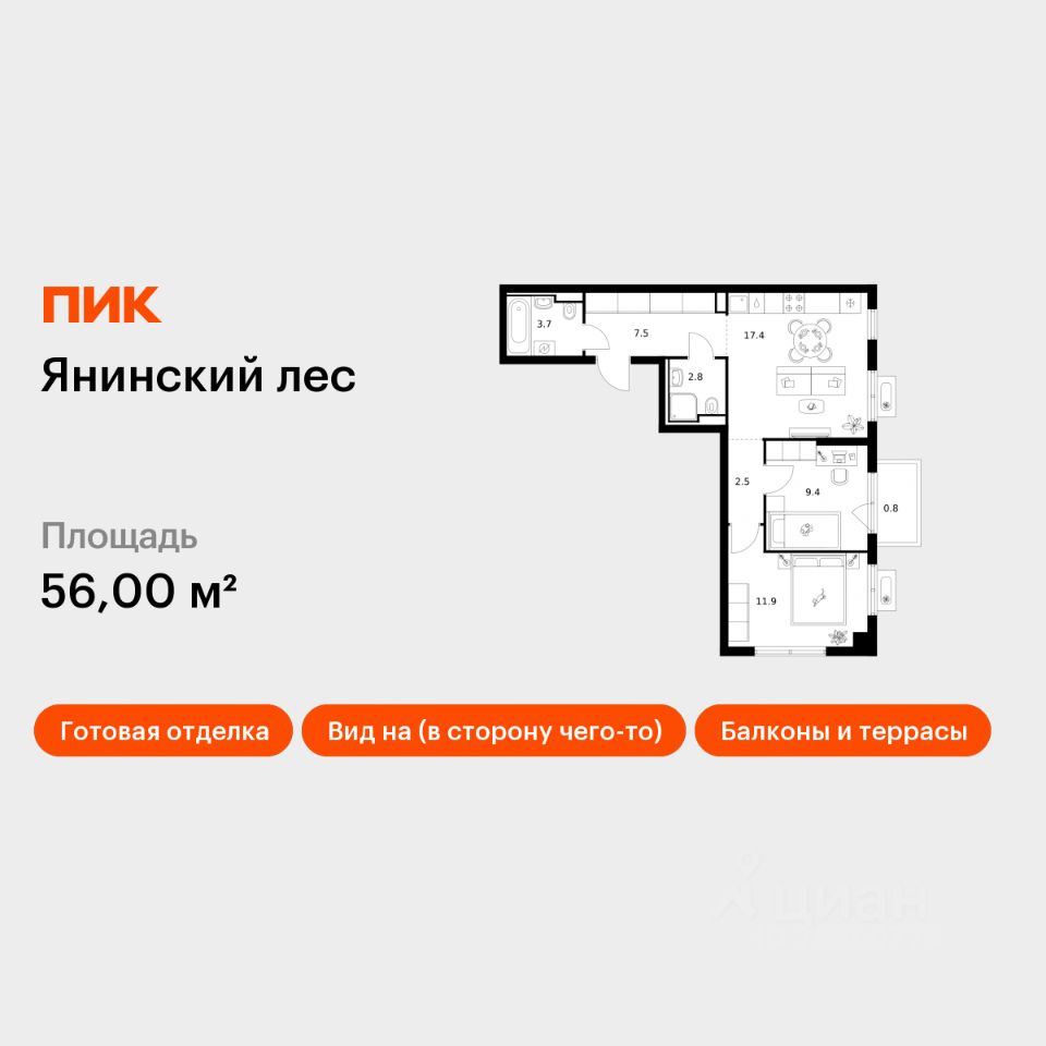 Продаётся 2-комн. квартира площадью 56 кв.м на 8 этаже 15 этажного дома (Корпус 1, Секция 2) проекта ПИК Янинский лес. Светлый просторный подъезд на уровне земли, функциональная планировка, большие окна, c отделкой.