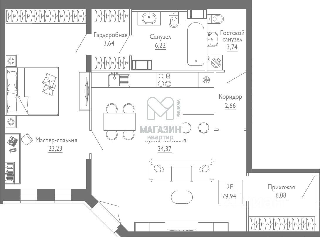 Квартира сдается без отделки.