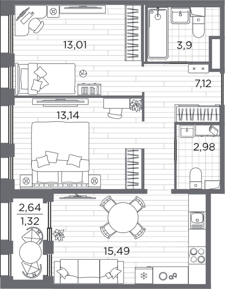 Продаётся 2-комнатная квартира в строящемся доме (Дом 6), срок сдачи: IV-кв. 2026, общей площадью 56.96 кв.м., на 2 этаже. Жилой квартал Respect - современная респектабельность.