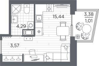 Продаётся студия в строящемся доме (Дом 3), срок сдачи: IV-кв. 2027, общей площадью 24.31 кв.м., на 4 этаже. Жилой квартал Respect - современная респектабельность.