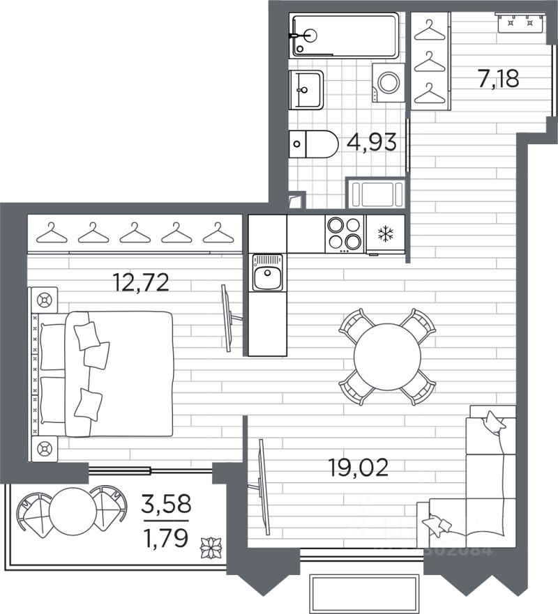 Продаётся 1-комнатная квартира в строящемся доме (Дом 4), срок сдачи: IV-кв. 2027, общей площадью 45.64 кв.м., на 4 этаже. Жилой квартал Respect - современная респектабельность.