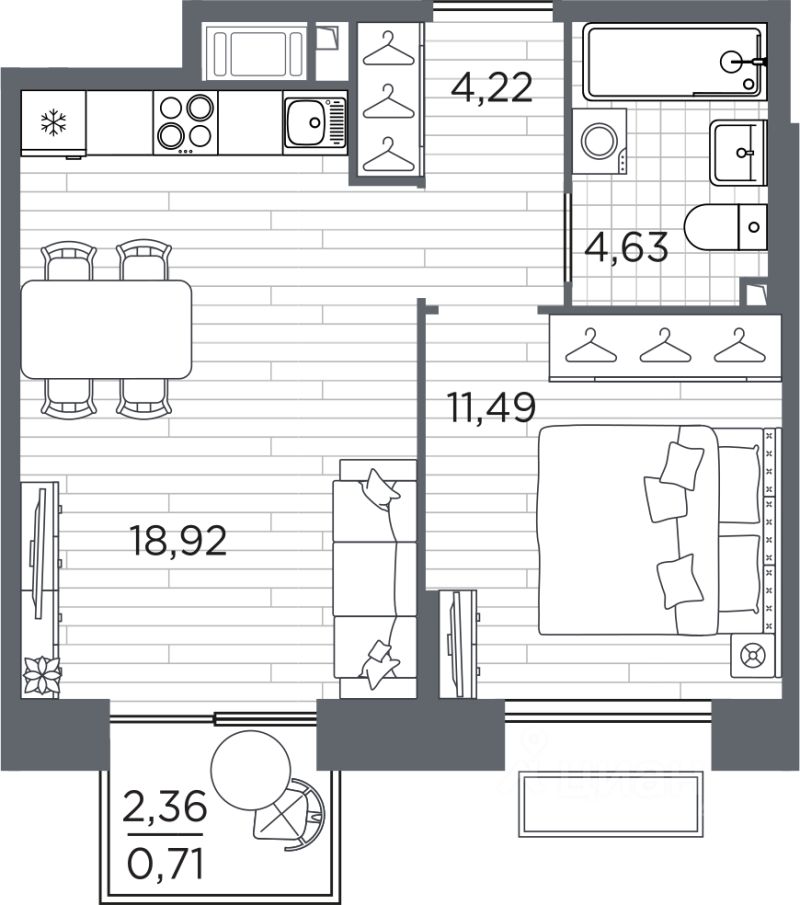 Продаётся 1-комнатная квартира в строящемся доме (Дом 5), срок сдачи: IV-кв. 2027, общей площадью 39.97 кв.м., на 4 этаже. Жилой квартал Respect - современная респектабельность.