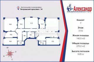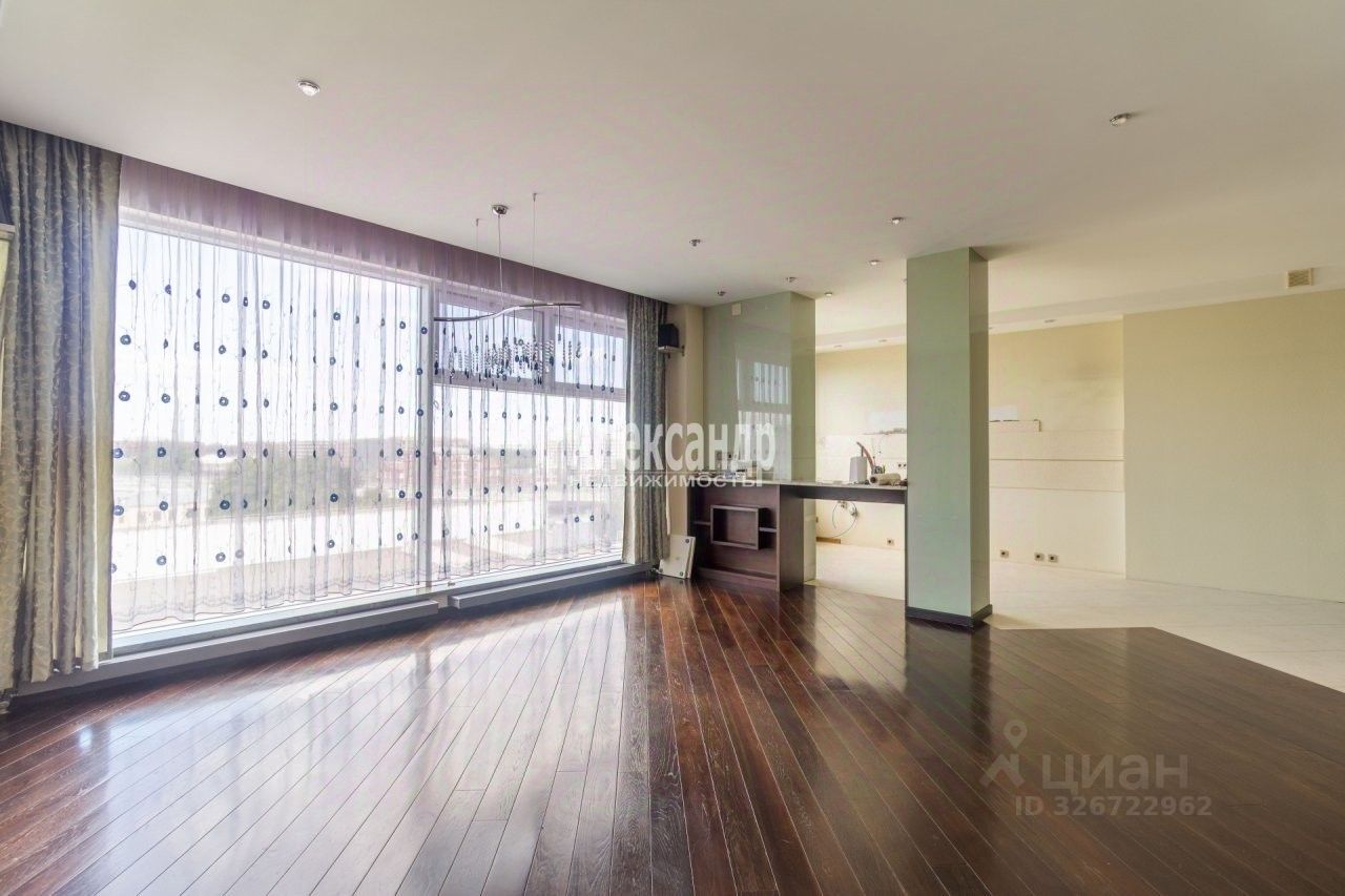 Кухня-гостиная 70 кв.м. с живописным панорамным видом на вантовый мост и залив, 4 спальни, 2 кабинета, вторая гостиная, которая может быть использована как игровая или тренажерный зал, 2 просторных санузла, 2 вместительных гардеробных, хозяйственная комната.