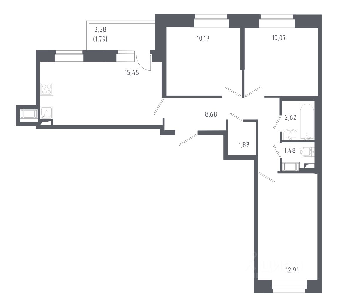 Площадь кухни15,5 м²