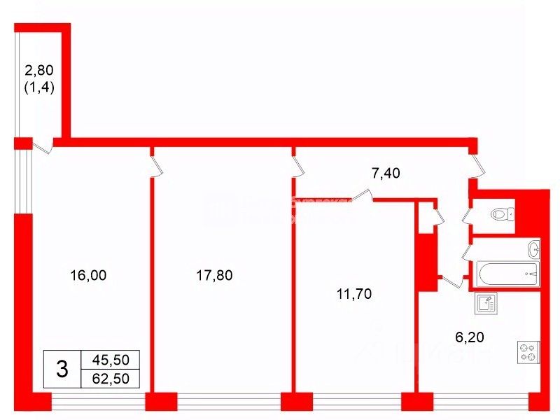 Санузел раздельный, установлен новый унитаз. Ванна чугунная, сохранилась в хорошем состоянии.