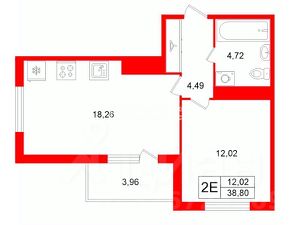 Квартира располагается на комфортном 3 этаже, общая площадь 38,8 м2, кухня 18,26 м2. Ремонт от застройщика.