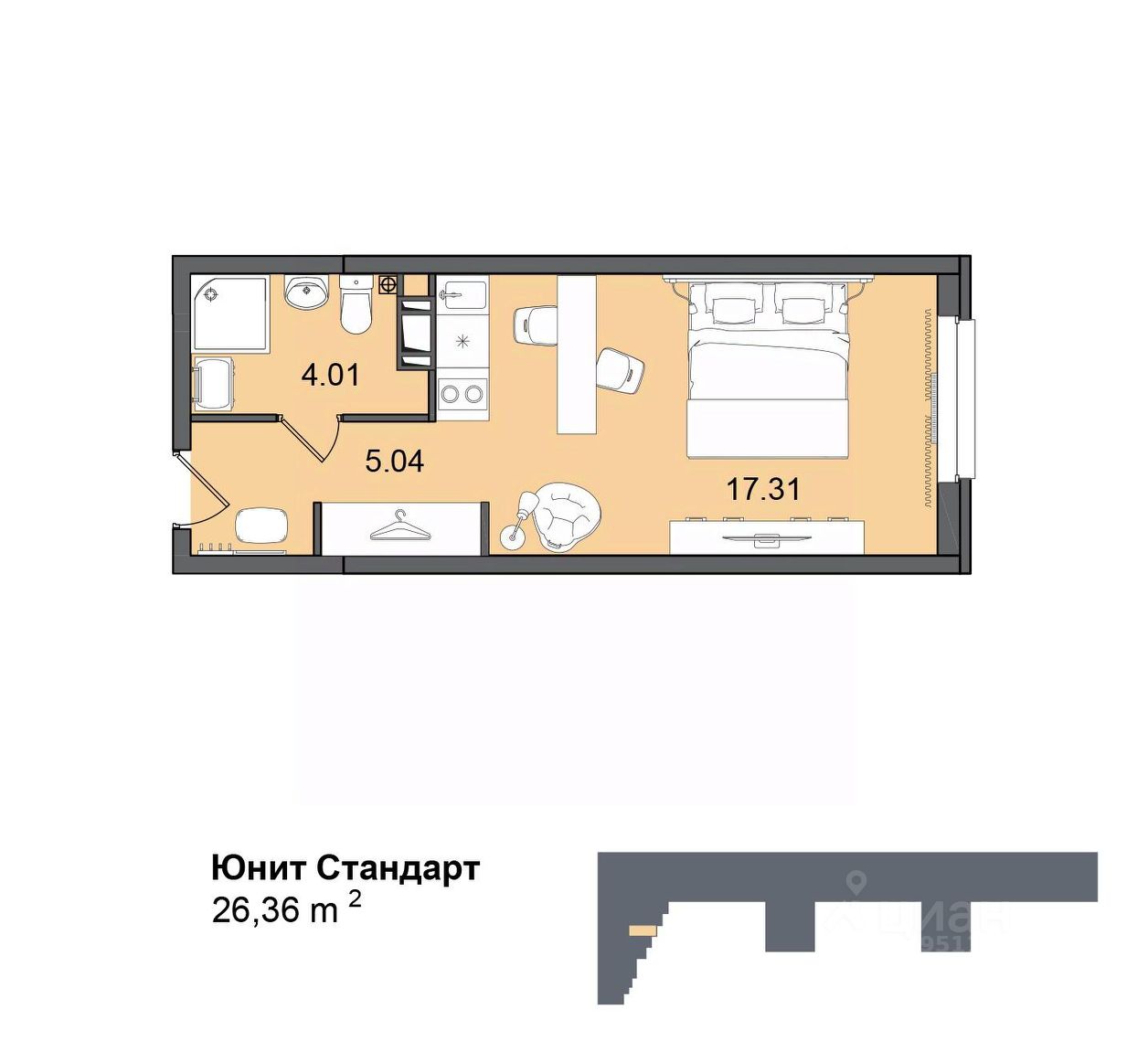 Общая площадь26,4 м²