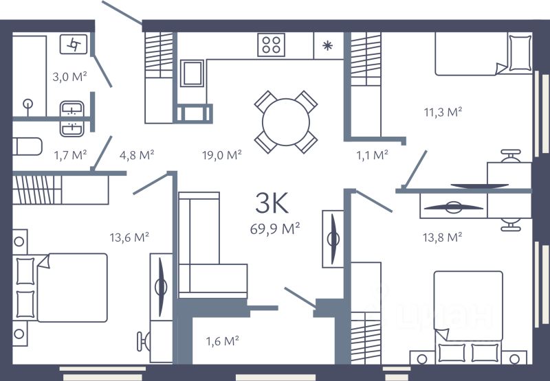 Продаётся 3-комнатная квартира в строящемся доме (Дом 1), срок сдачи: I-кв. 2028, общей площадью 69.9 кв.м., на 7 этаже. Жилой комплекс "Лендлер" - это современный малоэтажный проект комфорт-класса, расположенный в динамично развивающемся районе Кудрово, в доступности от станции метро "Улица Дыбенко".
