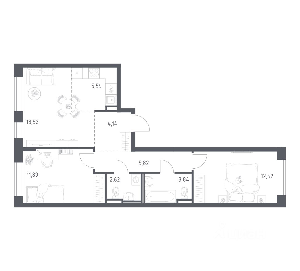 Строим кварталы для жизни с заботой о будущем. Предлагается 2-комнатная квартира комфорт-класса площадью 59,94 кв.м в корпусе 96 на 18-м этаже, в жилом комплексе "Живи! В Рыбацком".
