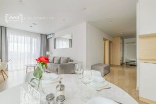Трехкомнатный апартамент находится на высоком 8 этаже с панорамным видом. Площадь 63,9м2, высота потолков 2.8м.