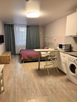 Апартаменты выполнены с дизайнерским ремонтом, что создает уютную и современную атмосферу. Компактная кухня площадью 2 кв. м объединена с жилой зоной, что делает пространство более открытым и светлым. Санузел совмещенный, оборудован современной сантехникой. Из окна открывается вид во двор, а на балконе можно наслаждаться свежим воздухом.