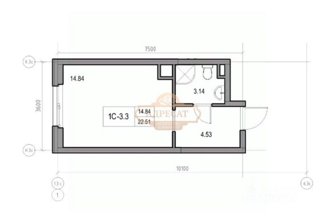 Квартира-студия общей площадью 22,5 кв.м., расположена на 11 этаже.