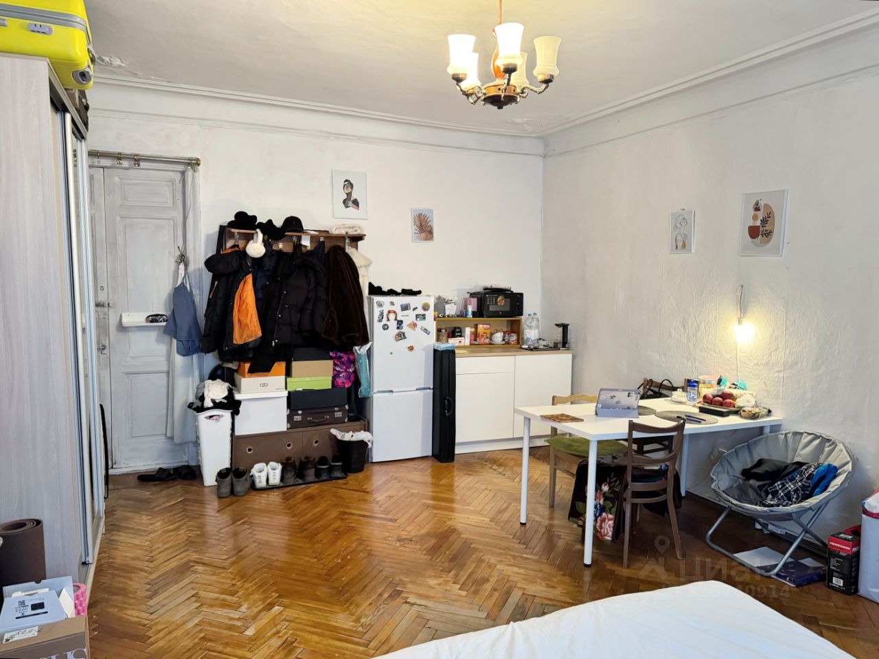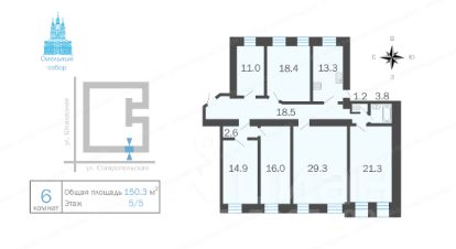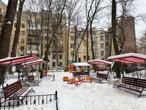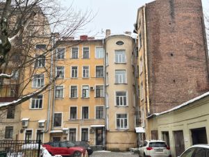 Квартира с удобной планировкой, с двумя входами, общей площадью 150.3 кв.м на 5 этаже, состоящая из 6 изолированных комнат, большой кухней около 13.3 м2 и большим коридором. В квартире раздельный санузел. Высота потолков - 3.0 м. Из 4 окон открывается вид во двор и на купола Смольного собора, остальная часть квартиры выходит на улицу. В квартире частично сохранились исторические детали: в комнатах лепнина, дверь в квартиру с звонком, латунные ручки, паркет.