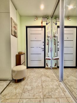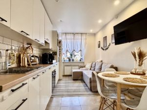 В прямой продаже уютная современная квартира с дизайнерским ремонтом 2022 года с видом на СНТ и холмы.