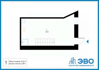 1. Простор для жизни: Высокие потолки 3,88 м создают ощущение свободы даже на 22,6 м².
