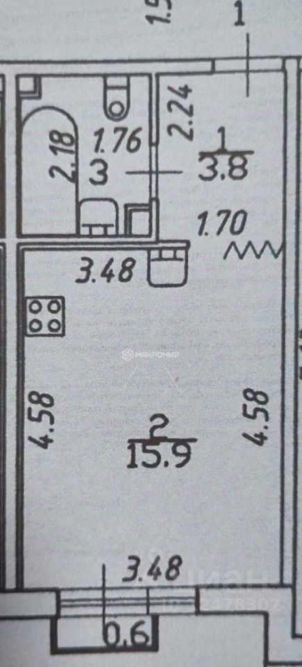 Общая площадь квартиры 23.5 м2. За счёт увеличенного оконного проёма в квартиру поступает много естественного света.