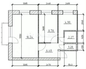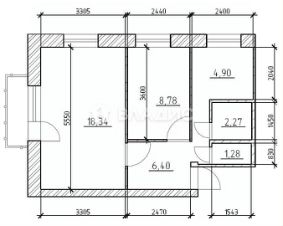 Комнаты изолированы, общая площадь составляет 42,5 кв. м, из которых 27,1 кв. м — жилая площадь.