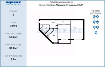 Квартира расположена на 12-ом этаже 16-ти этажного КИРПИЧНОГО дома.