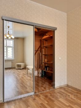 КВАРТИРА: жилая комната площадью 17,9 м2 плюс гардеробная 2,6 м2 (см. фото), кухня 8,9 м2 с выходом на застекленную лоджию площадью 2,8 м2, прихожая 6,6 м2.