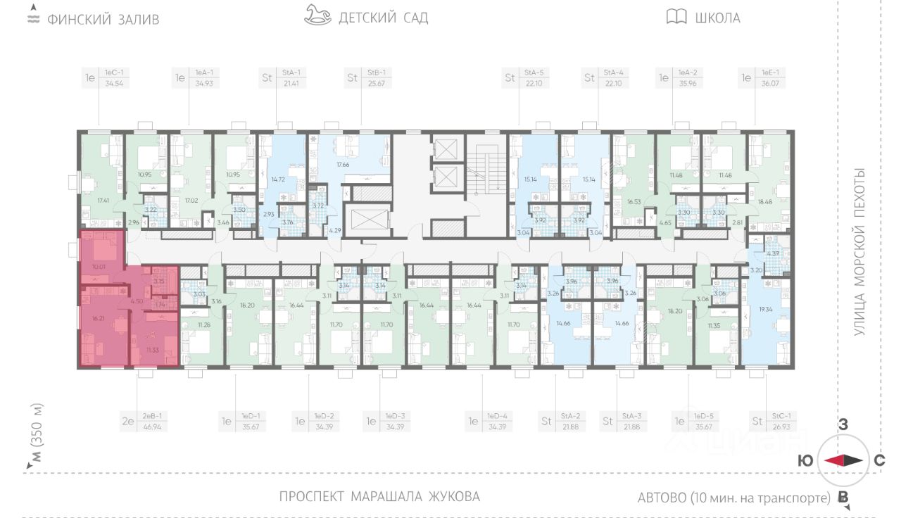 Продается 2-комнатная квартира в ЖК "Морская миля" на 2 этаже. Общая площадь составляет 46.94 кв. м. Квартира с чистовой отделкой. Жилой комплекс "Морская миля" располагается по адресу Санкт-Петербург, Красносельский.