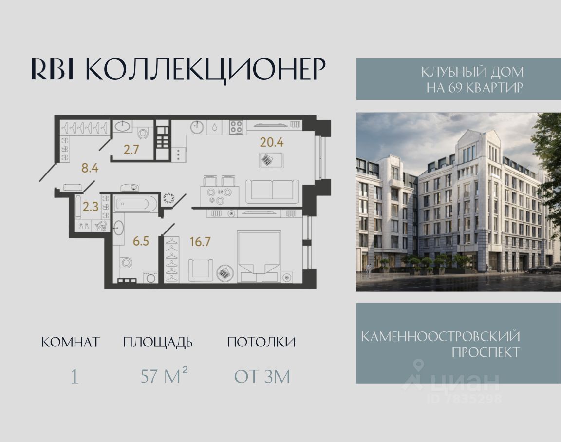 "Коллекционер" — клубный дом от RBI на 69 коллекционных квартир с террасами и люкарнами в Петроградском районе Петербурга на улице Чапыгина. Здесь роскошь пустоты и камерного уединения, воплотившаяся в модернистской архитектуре с элементами ар-деко, рождает новые вечные смыслы. Окружение располагает: среди роскошных доходных домов XIX века и уютных садов Петроградской стороны, которые хранят память былых столетий, пробуждается особое внутреннее стремление создавать новое, неподвластное времени. Средняя площадь квартир в проекте — 85,3 м². В коллекционной квартирографии выделяются исключительные лоты: 9 квартир с люкарнами и террасами, 4 из которых — двухуровневые, 2 из них — с двусветной гостиной и потолками до 6,4 м. В башнях-доминантах, которые проглядываются с Каменноостровского проспекта, ещё две уникальные квартиры: здесь потолки в кухне-гостиной достигают высоты 3,75 м. Все квартиры продаются без отделки. Окна и балконы — алюминиевые с накладками из натурального дерева внутри квартиры. Со стороны улицы Чапыгина коллекционеров и их гостей встречает парадный курдонёр с лаунж-зоной на открытом воздухе. Войдя в дом, вы попадаете в роскошное лобби, где за изящной стойкой ресепшн вас приветствует хостес. В центральной входной группе предусмотрели кофепоинты — чтобы в уютной зоне ожидания вы могли пообщаться с подругой за чашечкой свежесваренного эспрессо. Для деловых переговоров и интеллектуальных дискуссий — переговорные комнаты, которые может забронировать каждый из жителей. Направляясь из лобби во вторую секцию дома "Коллекционер", вы попадаете в анфиладную галерею в духе античной пинакотеки. Здесь каждый день вы можете вдохновляться глубокими акварелями Латифа Казбекова и скульптурными симфониями Виктора Грачёва — пространство healing arts у вас дома. Чтобы вы могли наполняться энергией и созерцать природную гармонию в приватной обстановке, во внутреннем дворе обустроили двухуровневое патио. Здесь, среди горных сосен, изысканных гортензий и клёнов, предусмотрели всё для зарождения вашей новой коллекции впечатлений: беседки под навесом — для сосредоточенной работы, уединённые лаунжи — для камерного общения и отдыха, качели-гнёзда за живой изгородью — для погружения в глубину своих мыслей, игровые площадки от Richter RUS — для счастливого детства ваших детей. Извилистые грунтовые дорожки ассоциируются с дворцово-парковыми ансамблями пригородов Петербурга и деликатной роскошью императорских резиденций. На всей территории сада — свободный Wi-Fi. Попасть сюда могут только жители по электронному цифровому ключу. Для жителей оборудуют подземный паркинг на 57 м/м, 10 из которых — с зарядкой для электромобилей. На втором этаже предусмотрены кладовые — их всего 45, они докупаются отдельно. "Коллекционер". Ваша коллекция впечатлений
