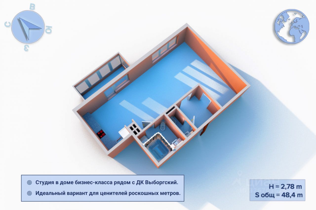 Просторная студия в доме бизнес-класса рядом с ДК Выборгский.