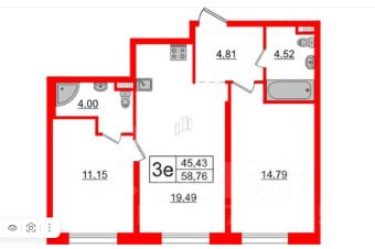 Площадь: 58.76 м²
