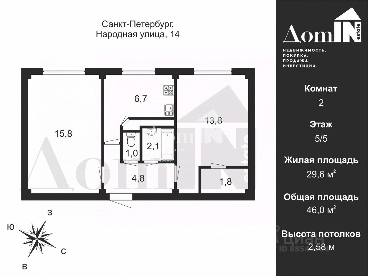 Арт. 129934860 Квартира солнечная , дом во дворе .