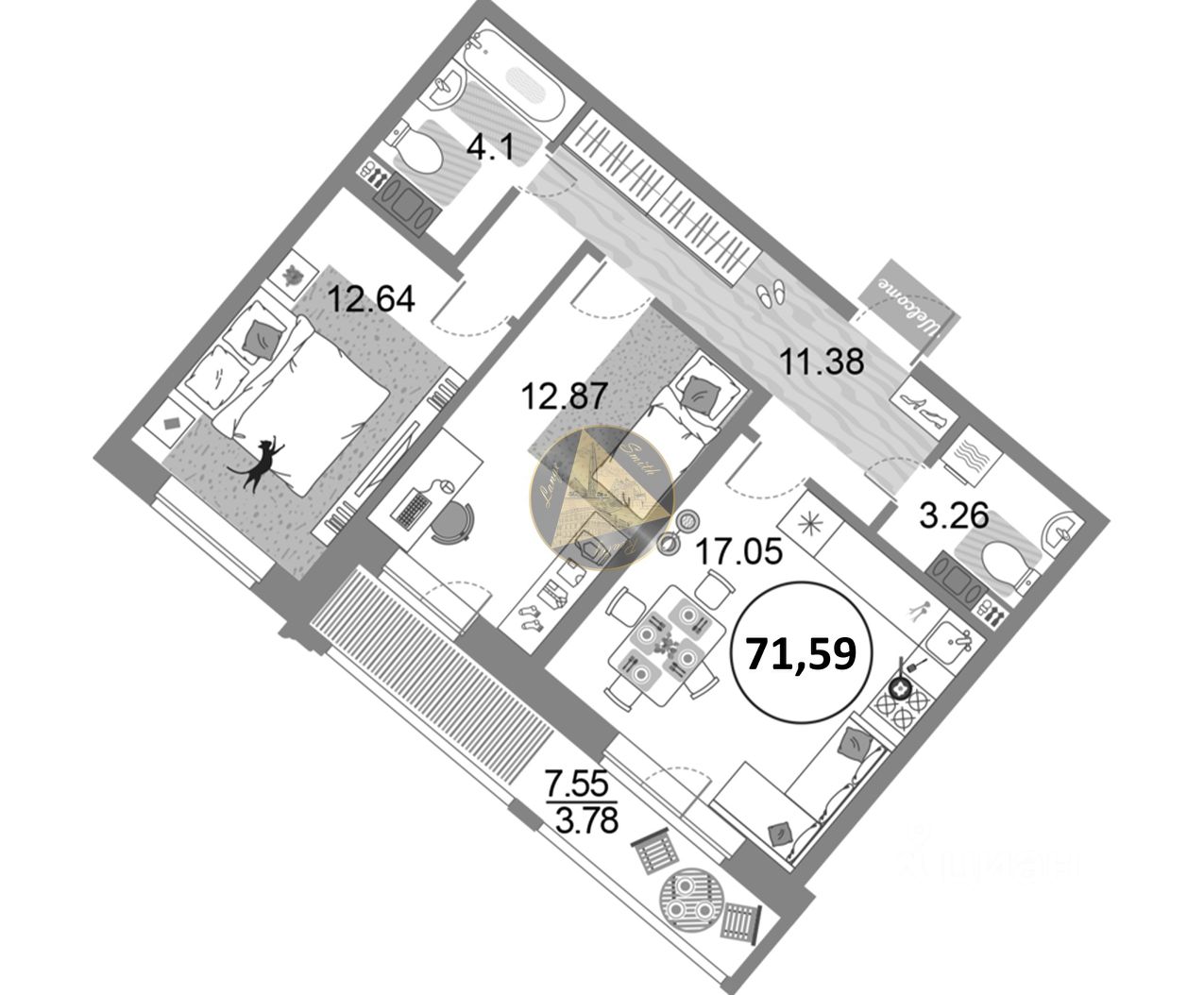 Срочно продаётся 2-комнатная квартира общей площадью 71,59 м2. в Приморском районе Санкт-Петербурга. Квартира находится в доме комфорт-класса, оформленном в стиле античной эстетики. Идеальный вариант для тех, кто хочет жить в стильном доме в окружении природы.