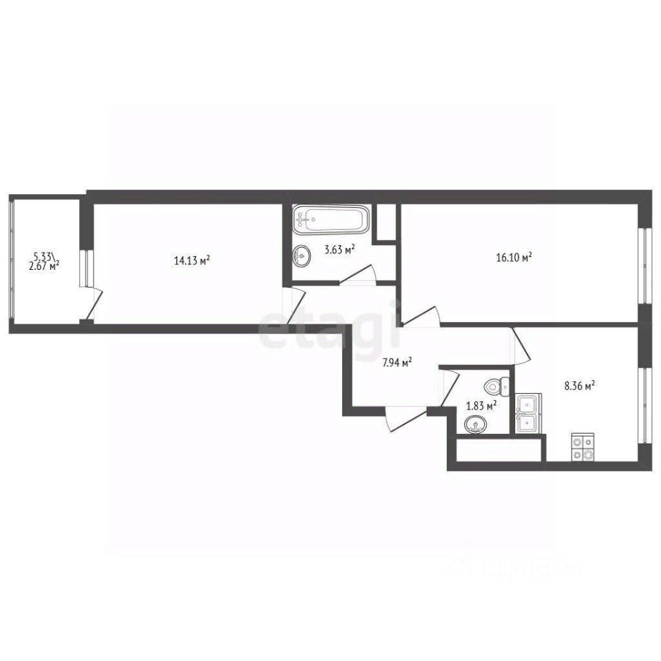 Двухкомнатная квартира в современном жилом комплексе предлагает рациональную и комфортную планировку.