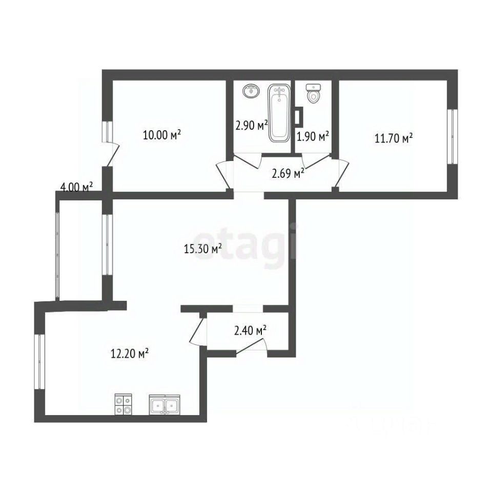 Комнаты: 15,3 / 11,7 / 10 кв.м.