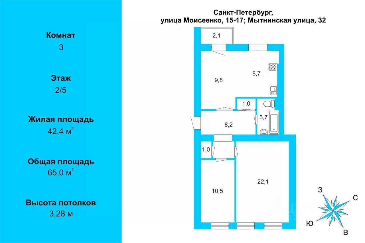 + Площадь квартиры 65 м без учета балкона