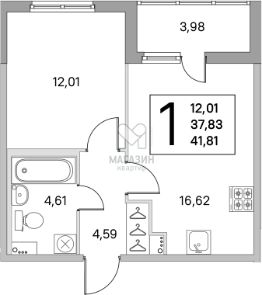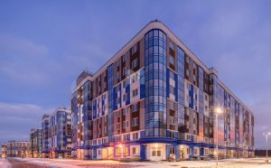 Пол: ламинат с фаской 32 кл. "Egger PRO EPL102 Дуб Амьен светлый" или аналог для корпусов 14.07 и 14.08, "Kastamonu Floorpan RED Дуб Корсар" или аналог для корпуса 14.09, санузел — керамическая плитка
