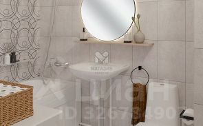 Стены: виниловые обои нейтральных тонов, санузел — керамическая плитка