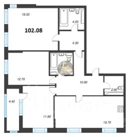 Раздельный санузел 4.2 + 4.2 + 2.6 м2