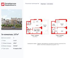 Уникальная, функциональная европланировка, большая кухня-гостиная 30.2 м², вместительная прихожая 6.3 м². Общая площадь апартаментов - 107 м², жилая 39.25 м².