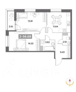 - изолированные комнаты - 14.53 и 13.84 м кв