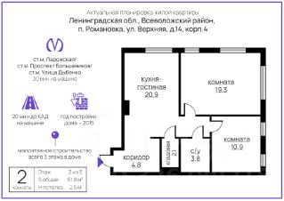 Продается уютная двухкомнатная квартира в поселке Романовка, расположенная по адресу: Верхняя улица, 14к4. Квартира находится на 2 этаже 3-этажного монолитного дома, построенного в 2015 году. Общая площадь квартиры составляет 61.8 кв. м, а просторная кухня занимает 15 кв. м. Высота потолков — 2.7 метра, что создает ощущение простора и комфорта.Кладовка (10 метров) идет в подарок.