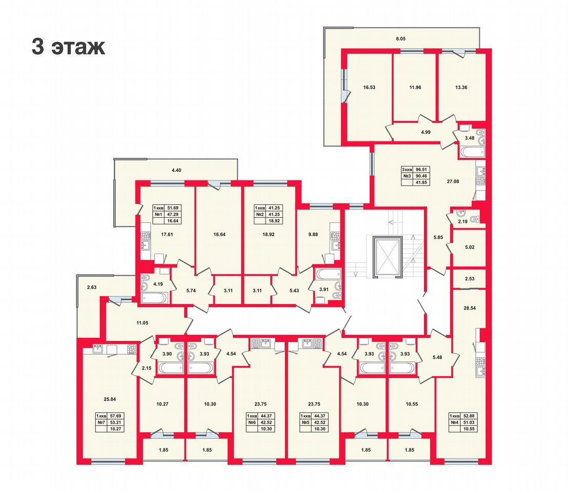 Квартира 90,1 м2 с высотой потолка 2,75 м.