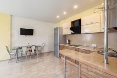 В квартире сделан косметический ремонт, что позволяет сразу заехать и жить. Санузел совмещенный, есть балкон. Просторная кухня дает возможность обустроить уютное место для семейных обедов и приема гостей. Дом оборудован двумя пассажирскими лифтами и пандусом, поэтому можно не беспокоиться о доступности для маломобильных групп населения. Для автовладельцев предусмотрена подземная парковка.