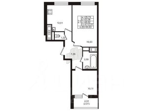 Общая площадь 48,5 кв.м. + балкон 4,02 кв.м. ( комнаты 16,63 кв.м. и 10,11 кв.м.)