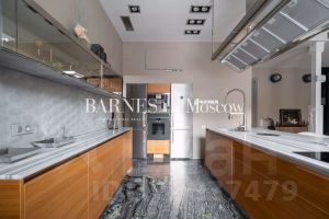 Кухня: материал тик Arclinea. Столешница - мрамор.Техника: Gaggenau (духовка, кофемашина, подогреватель посуды), Liebherr (2 холодильника) Вытяжка: Arclinea Обеденный стол из мрамора Bianca Carrara. Также имеется охладительная зона 1.5 кв.м (для продуктов и вина).