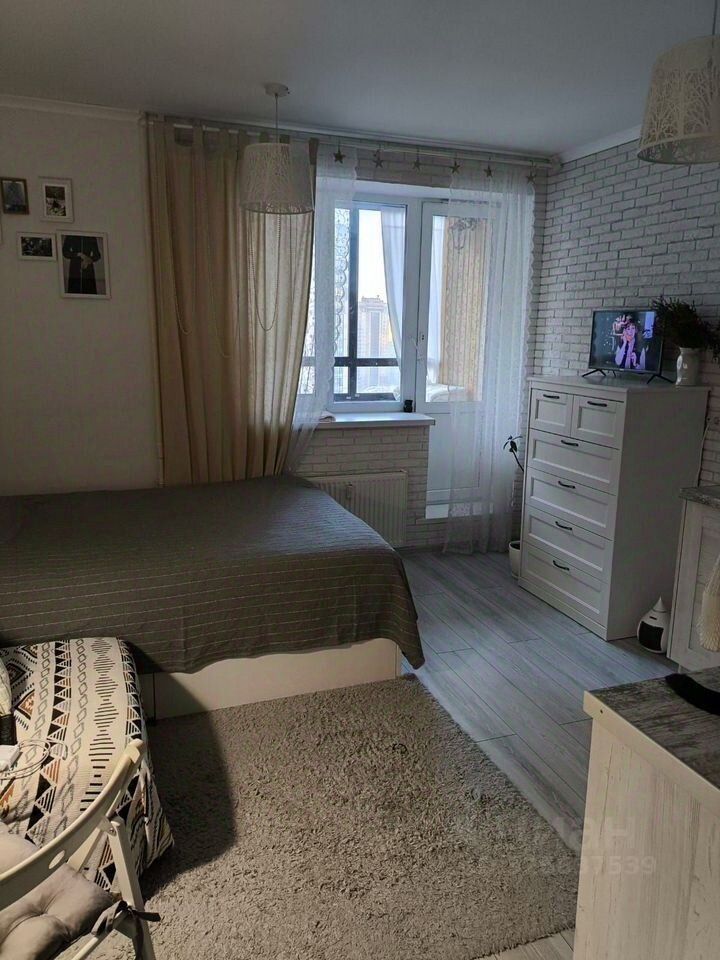 Продается светлая, уютная студия на 18 этаже.Дом кирпично-монолитный 2021 года постройки.Студия 21,6 кв.м.Мебель и техника остается Новым владельцам.Развитая инфраструктура.Сетевые магазины, супермаркеты, банки, аптеки, кафе.Рядом детский сад.Для автомобилей есть парковочные места. Один взрослый собственник