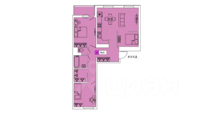 Квартира: 3-х комнатная евроформата площадью - 76,3 м². Высокие потолки - 2,74 м., создается ощущение простора и света. Расположена на 18 этаже 19-и этажного дома.