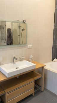 Комфорт продуман до мелочей: два санузла, отдельная гардеробная, постирочная и хозблок — всё, что обычно не помещается в городской квартире, здесь вынесено в отдельные помещения и не занимает жилую площадь. Есть тёплые полы — уютно в любое время года. Дополняют пространство большая лоджия и отдельный балкон.