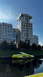 Дом — ЖК Омега: консьерж, порядок и безопасность. Для автомобиля предусмотрены два варианта парковки — открытая за шлагбаумом и закрытая подземная. Дополнительный плюс локации — парковка катеров рядом с домом.