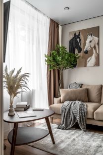 Гостиная с диваном и ТВ-зоной — уютная, светлая, для отдыха и встреч. Большая лоджия — 6 метров солнца и воздуха.