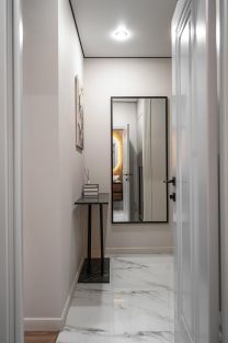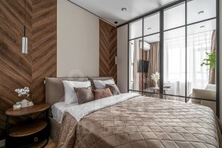 Гардеробная комната — редкость для такого метража,отдельное помещение для хранения, а не просто громоздкий шкаф.